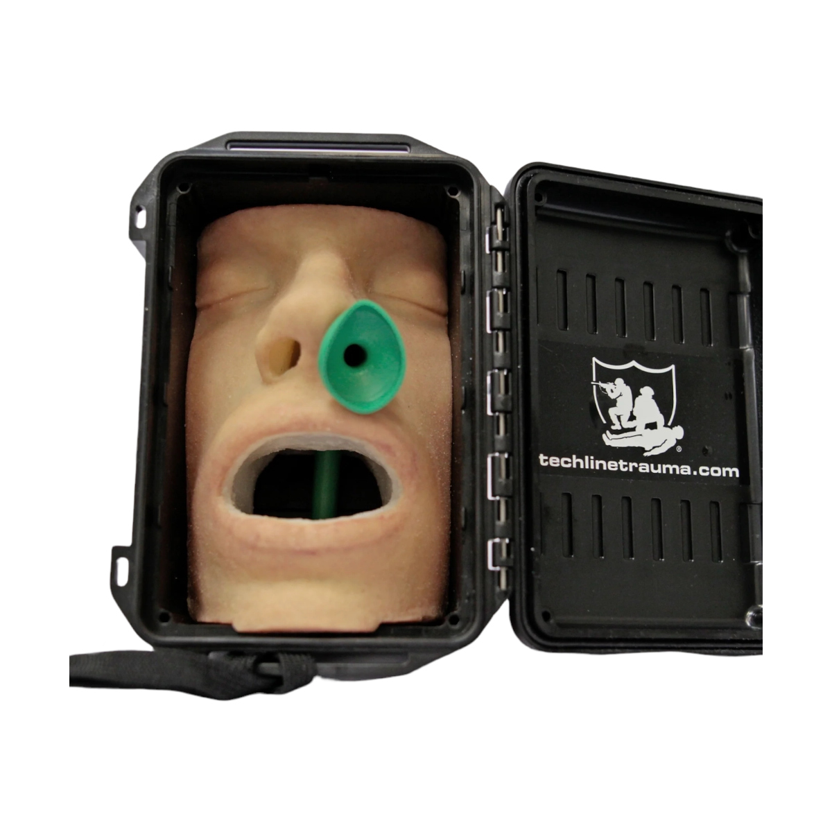 Trenażer Nose in a Box® firmy Techline Technologies to kompaktowy symulator przeznaczony do nauki i doskonalenia techniki zakładania rurki nosowo-gardłowej (NPA – Nasopharyngeal Airway) w warunkach szkoleniowych. Model umożliwia prowadzenie praktycznych ćwiczeń dla ratowników medycznych, personelu medycznego oraz służb mundurowych, pozwalając trenować procedurę udrażniania dróg oddechowych w sytuacjach nagłych.