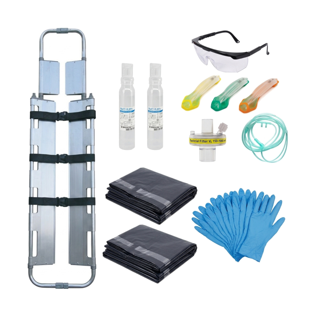 Bezpieczeństwo i Higiena (BHP): Komplet obejmuje certyfikowane okulary ochronne oraz zapas wytrzymałych rękawiczek nitrylowych, zapewniając ratownikom niezbędną barierę ochronną.